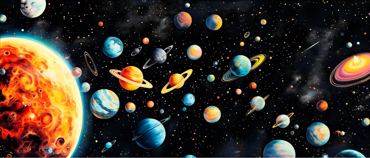 A starlit dance of swirling planets and glowing rings — where wonder and imagination orbit in every dreamy detail.