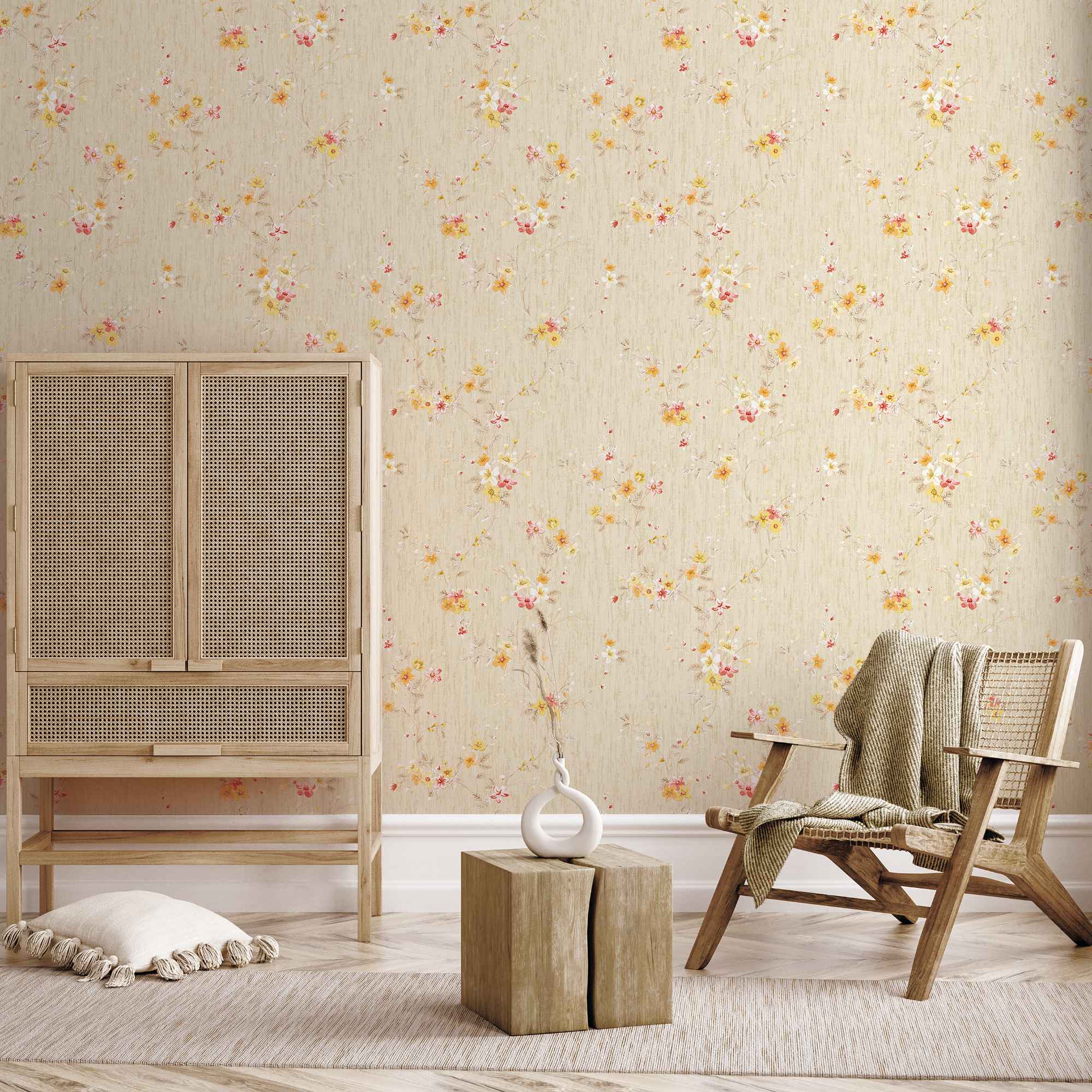 Introducing the HERA6 collection, where the serene beauty of nature meets interior elegance. Each design is thoughtfully crafted to bring the calming influence of natural elements into your home. The tropical vibes of graceful palm tree silhouettes set a relaxed, exotic tone, while intricate leaf designs invite the freshness of the outdoors inside, creating a tranquil and vital atmosphere. Stone-inspired patterns bring earthy, grounding textures that add depth and timeless charm to any space. Plaster-inspired wallpapers offer a sophisticated, artisanal look with their subtle textures and neutral tones, providing an elegant yet understated backdrop. For those seeking a touch of romance, floral patterns celebrate the delicate beauty of blossoms, infusing your interiors with color and grace. Finally, fabric-inspired designs bring the soft, natural feel of linen, creating a cozy, inviting ambiance perfect for relaxing and unwinding. The HERA6 collection offers a harmonious blend of style and serenity for any room in your home.