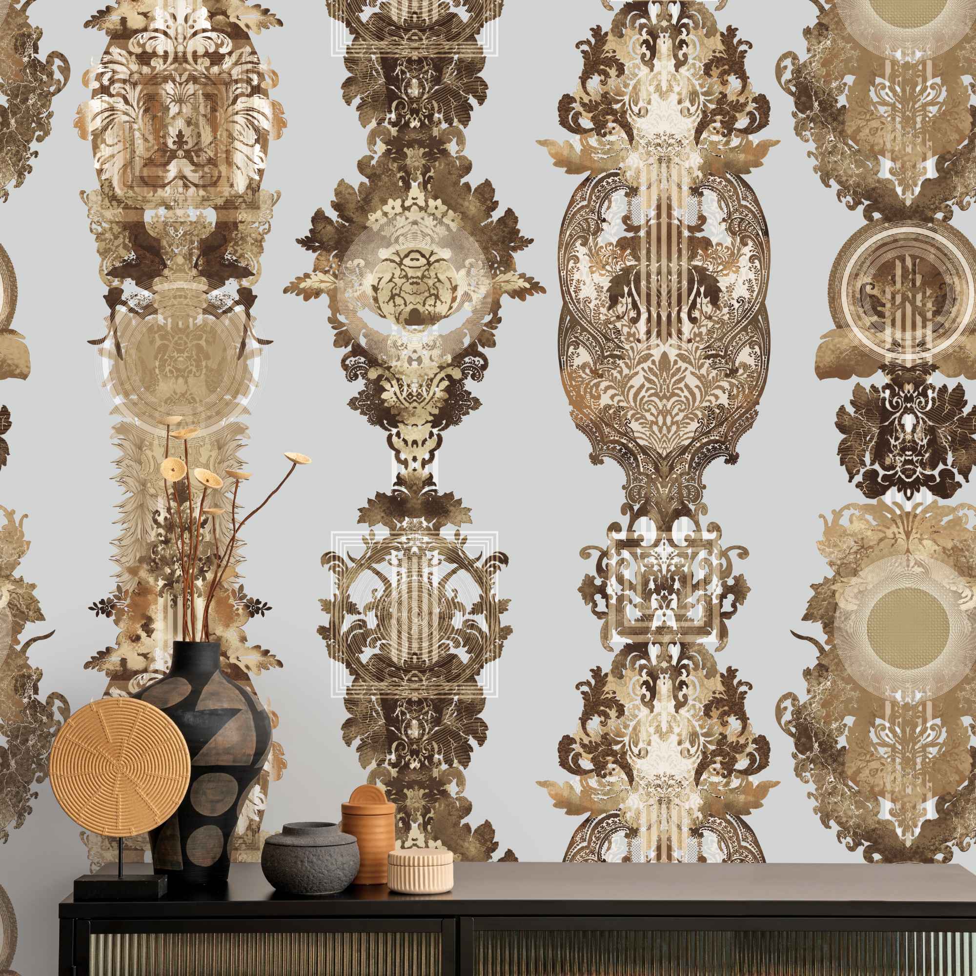Introducing the HERA6 collection, where the serene beauty of nature meets interior elegance. Each design is thoughtfully crafted to bring the calming influence of natural elements into your home. The tropical vibes of graceful palm tree silhouettes set a relaxed, exotic tone, while intricate leaf designs invite the freshness of the outdoors inside, creating a tranquil and vital atmosphere. Stone-inspired patterns bring earthy, grounding textures that add depth and timeless charm to any space. Plaster-inspired wallpapers offer a sophisticated, artisanal look with their subtle textures and neutral tones, providing an elegant yet understated backdrop. For those seeking a touch of romance, floral patterns celebrate the delicate beauty of blossoms, infusing your interiors with color and grace. Finally, fabric-inspired designs bring the soft, natural feel of linen, creating a cozy, inviting ambiance perfect for relaxing and unwinding. The HERA6 collection offers a harmonious blend of style and serenity for any room in your home.