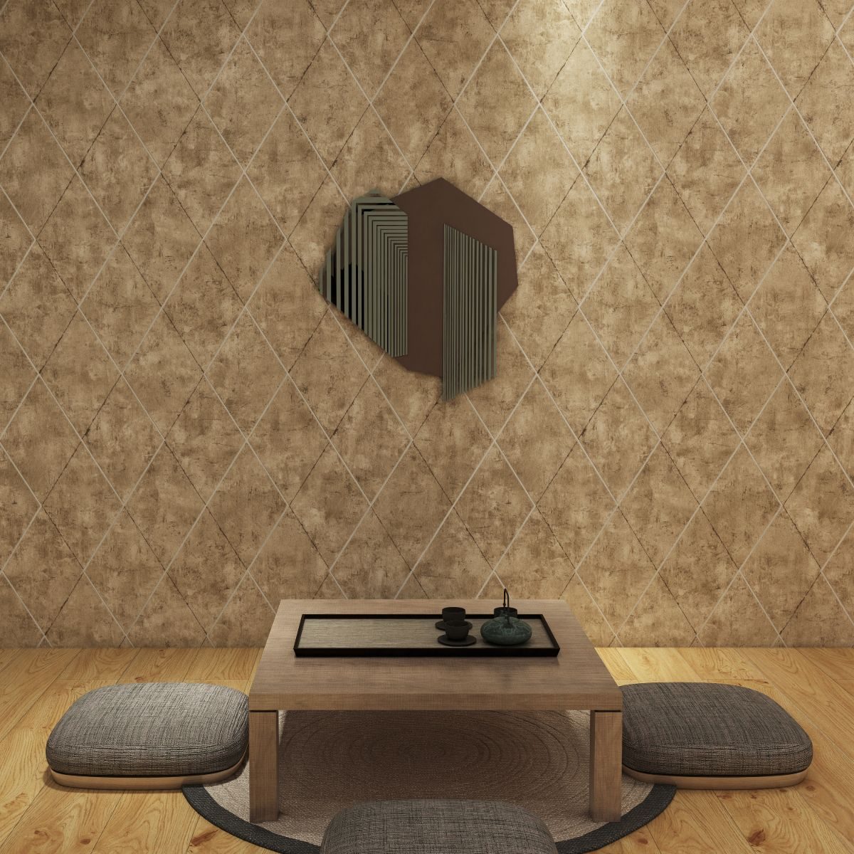 Interior with basic geometric arrangements, delicate three-dimensional effect and solid colour palette would deliver us the ease and comfort as well as the creation of lively space by combining bold and contrasting geometric, color and patterns.